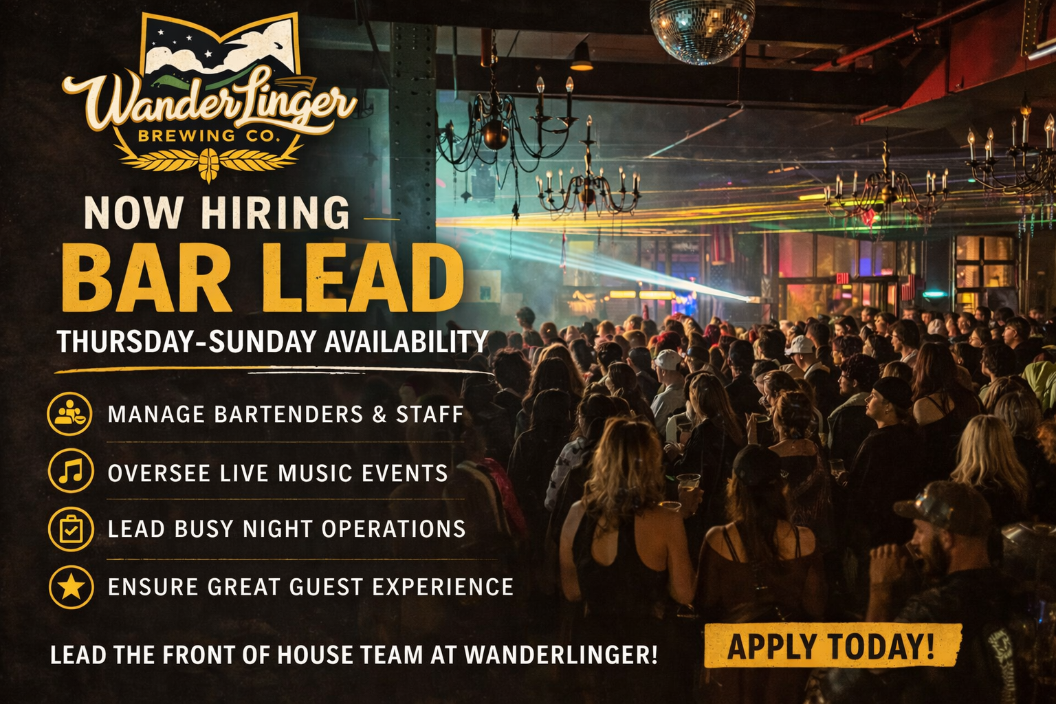 Wanderlinger Brewing Company is looking for a primarily Weekend Bar Lead/Supervisor to oversee front-of-house operations during our busiest nights. This role is responsible for leading taproom staff, maintaining excellent guest experiences, and helping coordinate live music events that frequently take place on weekends.