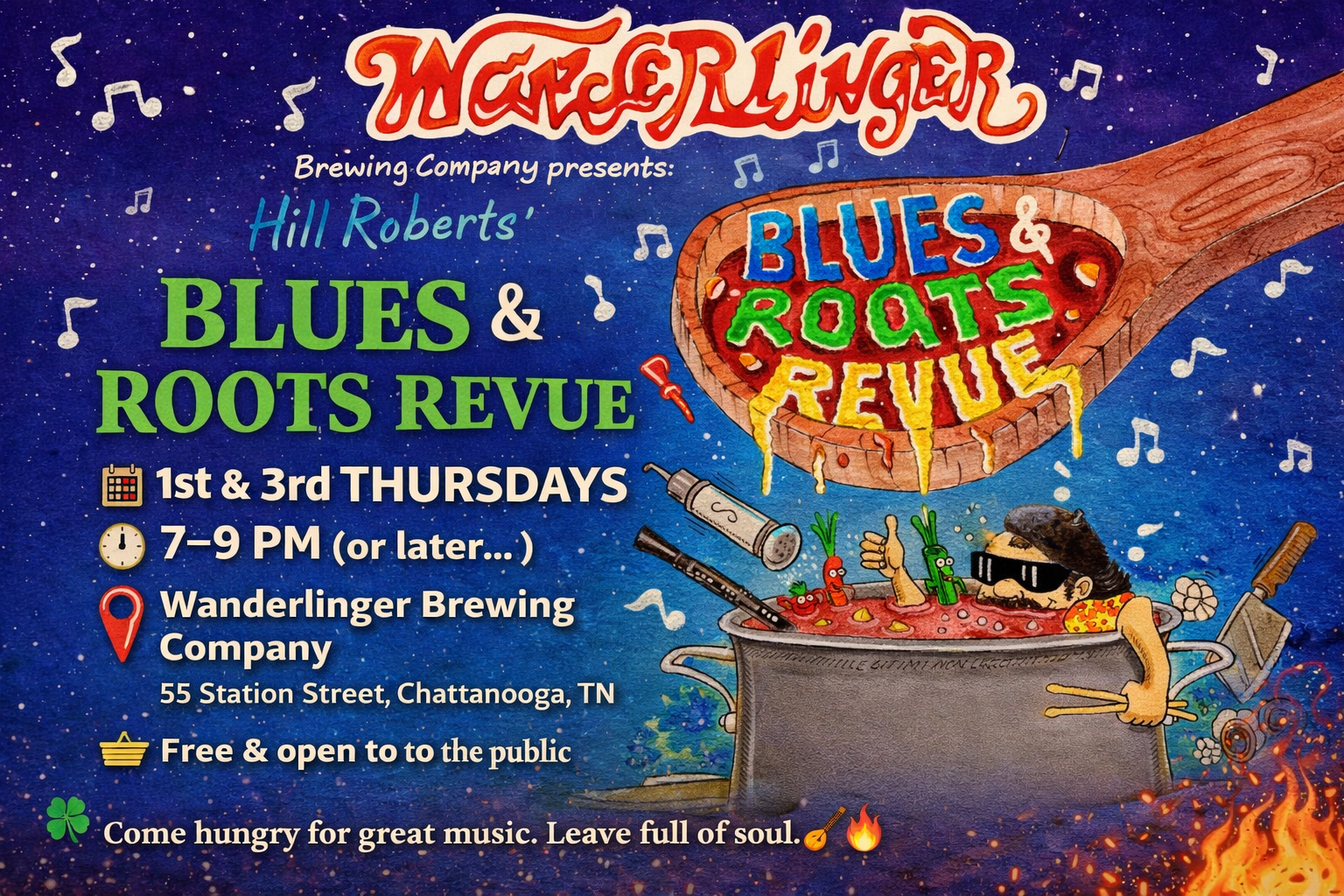 Happening the 1st & 3rd Thursday of every month, this free-to-the-public showcase stirs up the best in blues, roots, and original music right here in Chattanooga. Expect smokin’ hot performances, fresh “entrées” of talent every show, and the kind of vibe that simmers all night long.