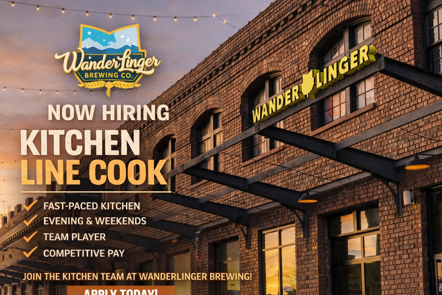 Wanderlinger Brewing Company is seeking a reliable and motivated Kitchen Line Cook to join our team. This role is responsible for preparing high-quality food, maintaining kitchen standards, and supporting a fast-paced brewery kitchen during service.